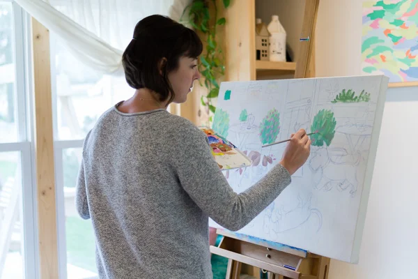 Michelle does a terrific job of marketing her work. She paints custom watercolor portraits and is writing and illustrating children’s books, and her websites showcase the work with outstanding product photography. Michelle's paintings are beautiful and personal, so she knows it's important to make a personal connection with visitors to her websites. To take her marketing imagery a step further, then, she contacted me to make some picture of her at work in her studio.